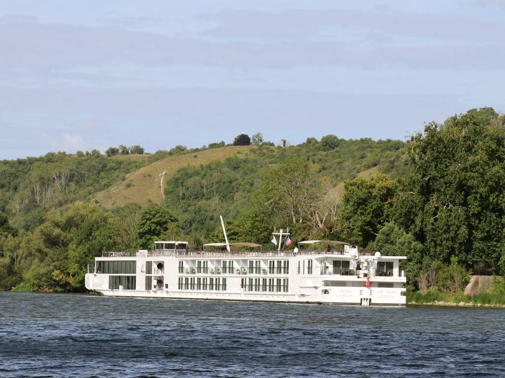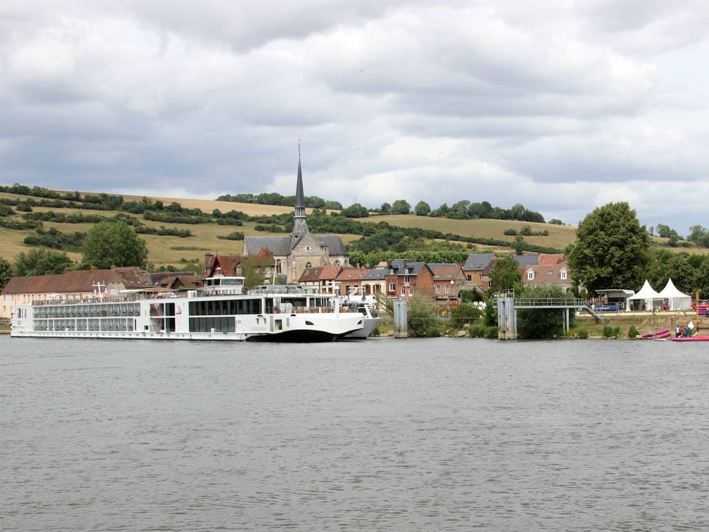 montant est en attente. En passant devant le château de la Roche Guyon, le Viking Fjorgyn est amarré au